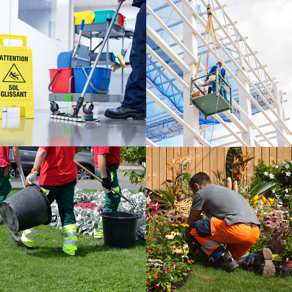 Ce secteur comprend les activités de nettoyage, de désinfection et de destruction de parasites (dans les bâtiments, transports, machines industrielles, ...). Il regroupe également l'aménagement et l’entretien paysager, les services de balayage des chaussées, de déblaiement de la neige et de la glace, etc...