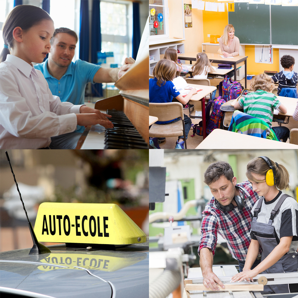 Ce secteur comprend principalement les établissements d'enseignement de la maternelle à l'université ainsi que les établissements de formation continue et les auto-écoles.